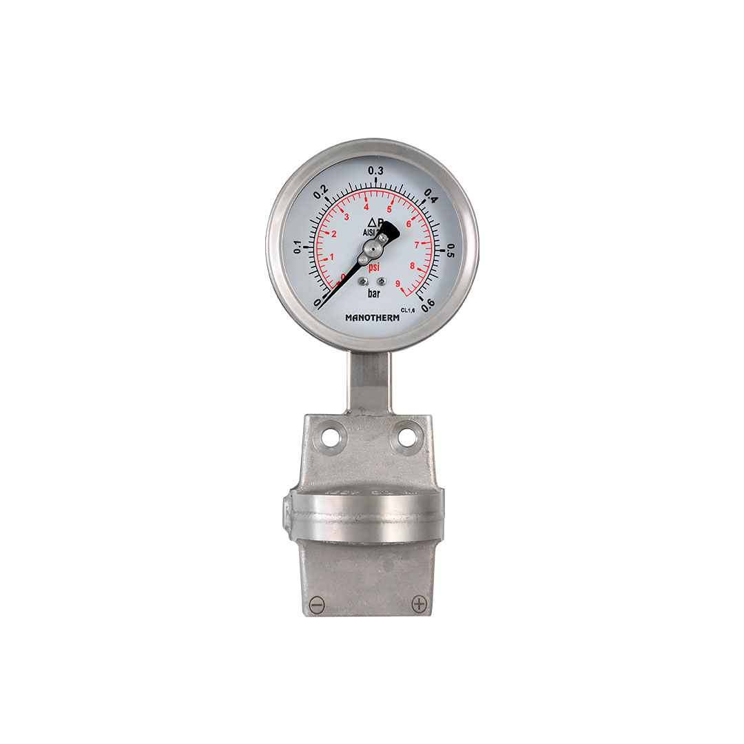 The MT-P110DP operates based on diaphragm differential pressure sensing, which is especially effective for applications involving low-pressure differentials. A diaphragm separates two isolated pressure chambers. The pressure difference between the two sides causes the diaphragm to deflect proportionally. This deflection is then mechanically transmitted to the gauge pointer through a high-precision linkage system.